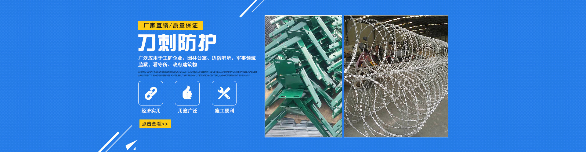 安平初日絲網(wǎng)有限公司是一家專(zhuān)業(yè)的絲網(wǎng)生產(chǎn)銷(xiāo)售廠(chǎng)家,主要產(chǎn)品有刀片刺繩、刺絲滾籠、刺繩支架等產(chǎn)品,公司為客戶(hù)提供產(chǎn)品知識(shí)和新鮮是市場(chǎng)行情,回答用戶(hù)產(chǎn)品相關(guān)問(wèn)題,幫助用戶(hù)更好的選購(gòu)產(chǎn)品。